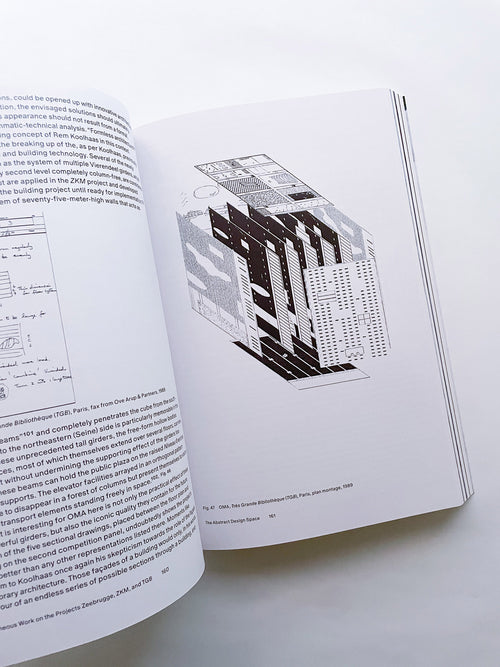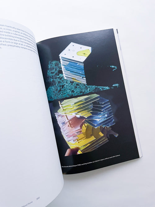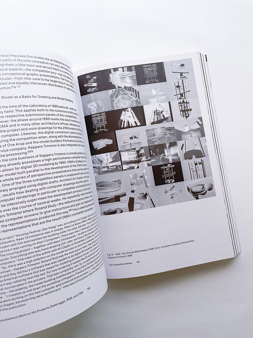 In 1989, the Office for Metropolitan Architecture (OMA) developed a daring architectural typology—a “project without form”. The setting is a laboratory headed by Rem Koolhaas, in which actors from different disciplines work on three competition challenges at the same time. In the process, the mechanisms of project development and knowledge acquisition merge into increasingly abstract systems and representations. The “project without form” is not built in any of the three cases. The book not only follows the progress of the laboratory in 1989 but also reflects on its prehistory and aftermath, drawing on interviews with various actors at OMA conducted by Holger Schurk. The publication focuses on the hybrid processes of production and representation in the OMA project Très Grande Bibliothèque (TGB) in Paris: these are visualized by means of numerous hitherto unpublished sketches, drawings, and photographs as well as sequences of video stills.