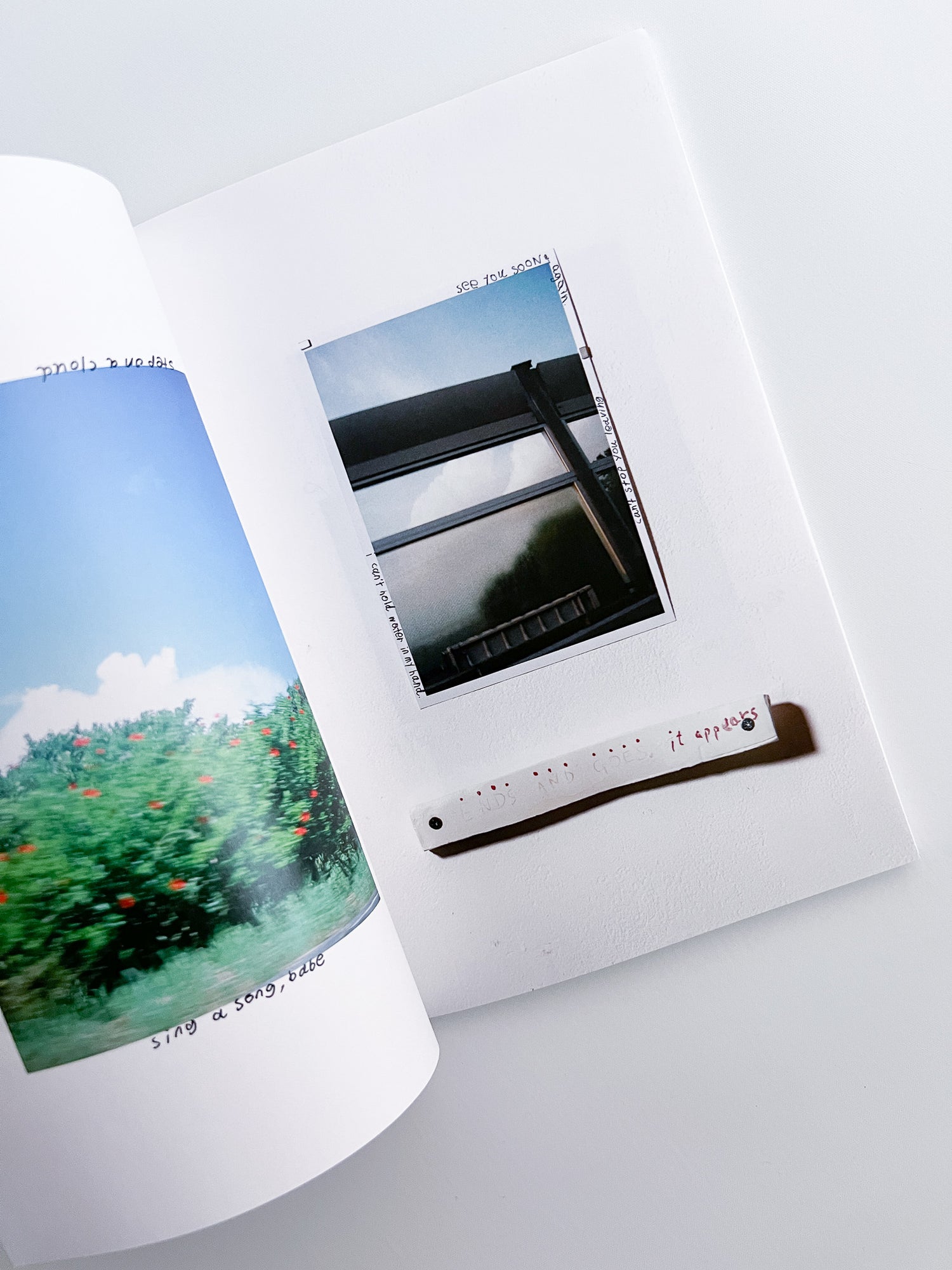写真家、工藤司によるZINE。本書は、工藤がヨーロッパへ訪れた際に飛行機のX線検査を複数回受けたため感光してしまったフィルムを持ち帰り、そのフィルムを使用し八丈島、伊豆大島で撮影した写真をまとめたもの。デザインは工藤と親交の深いデザイナー、大原大次郎が手掛けています。表紙には、大原と工藤が交互に手書きしたタイトルとクレジットが記されています。