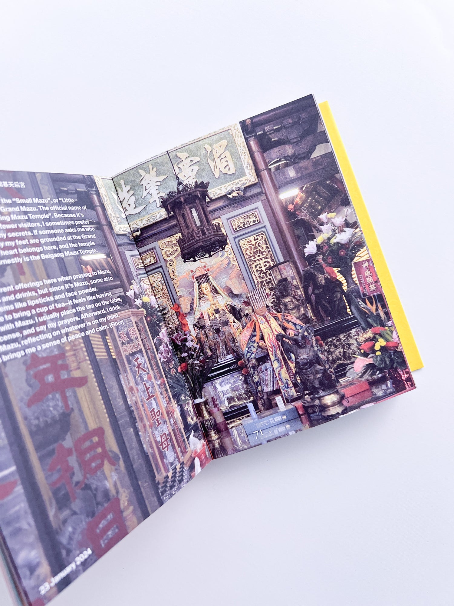 Mooni Perry’s Missing traces the trajectory of a journey across Taiwan in 2024. Evolving from research conducted for a video work, this book unfolds as a sensory archive and speculative inquiry into female Taoist communities, displaced sanctity, marginalized mythologies, and the missing body. Guided by spiritual figures such as Mazu, Guanyin, and the Seven Fairies, Perry weaves together field research, fictional fragments, poetic reflection, and visual stills into a rich, multilayered constellation.